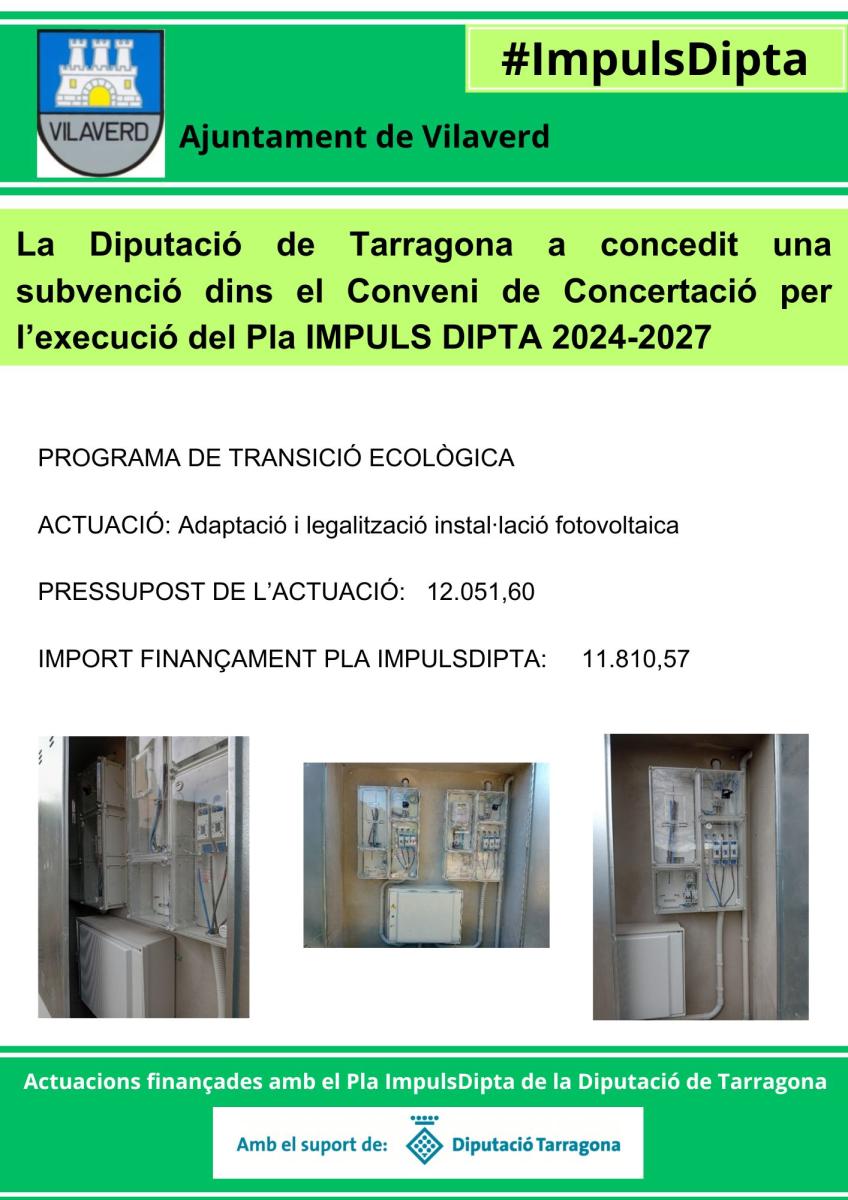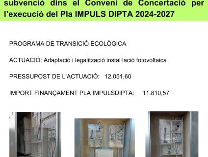 La Diputació de Tarragona a concedit una subvenció dins el Conveni de Concertació per l’execució del Pla IMPULS DIPTA 2024-2027